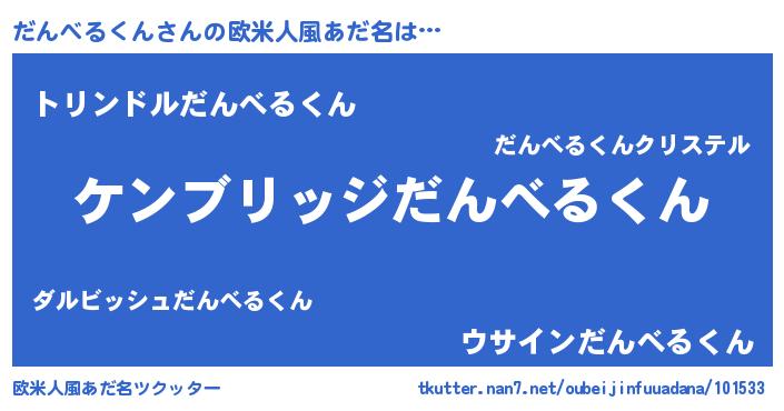| 男性向けラノベタイトル風あだ名 | 『Re:だんべるくんから始める異世界生活』 |