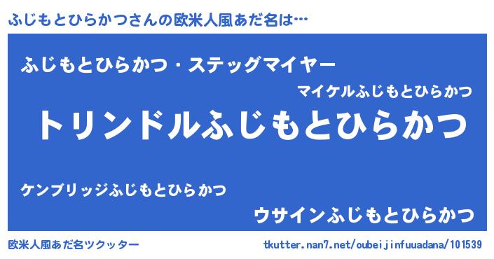 | 男性向けラノベタイトル風あだ名 | 『転生したらふじもとひらかつだった件』 |