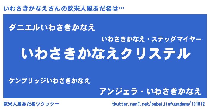 | ファンタジー風あだ名 | 『エターナルイワサキカナエー』 |