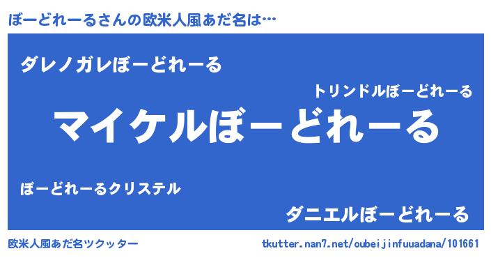 | 男性向けラノベタイトル風あだ名 | 『ぼーどれーるの憂鬱』 |