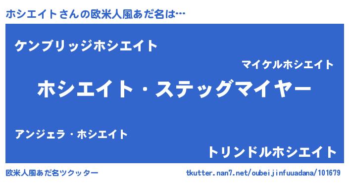 | 男性向けラノベタイトル風あだ名 | 『うちのホシエイトが世界を掌握している!』 |