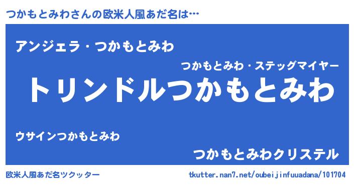 | 料理風あだ名 | 『つかもとみわごはん』 |