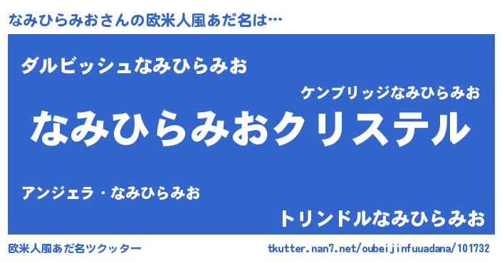 | ファンタジー風あだ名 | 『エターナルナミヒラミオー』 |