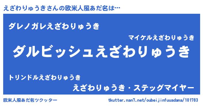| ヘコむあだ名 | 『えざわりゅうき(小並感)』『えざにー』 |