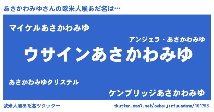 | 男性向けラノベタイトル風あだ名 | 『あさかわみゆの嫁は女の子じゃないと思った?』 |
