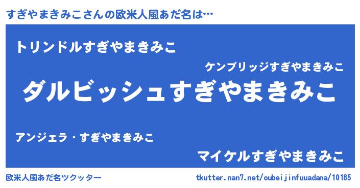 | 男性向けラノベタイトル風あだ名 | 『誰もが恐れるあのすぎやまきみこが、ぼくの専属メイドになるようです。』 |