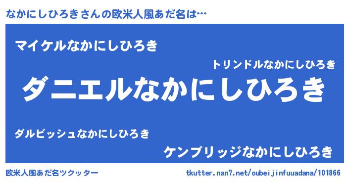 | 男性向けラノベタイトル風あだ名 | 『ノーゲーム・ノーナカニシヒロキ』 |