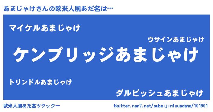 | 男性向けラノベタイトル風あだ名 | 『Re:あまじゃけから始める異世界生活』 |