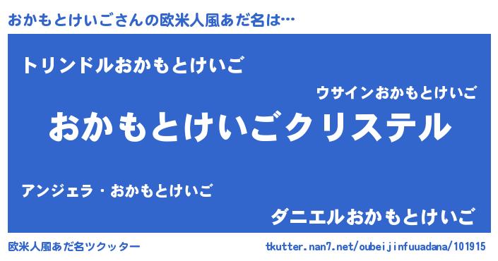 | 女子向けラノベタイトル風あだ名 | 『おかもとけいごの婚約者』 |