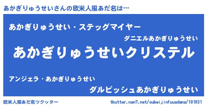 | 意味不明あだ名 | 『あかぎりゅうせいフォーエバー』 |