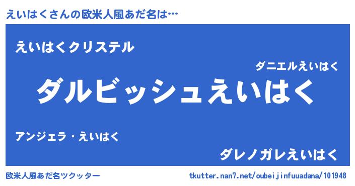 | 男性向けラノベタイトル風あだ名 | 『えいはくという概念が存在しない退屈な世界 』 |