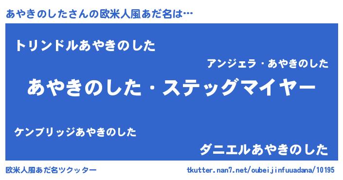 | ヒーロー風カッコイイあだ名 | 『慈愛の使者あやきのした』 |