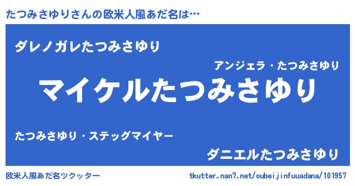 | 男性向けラノベタイトル風あだ名 | 『タツミサユリアートオンライン』 |
