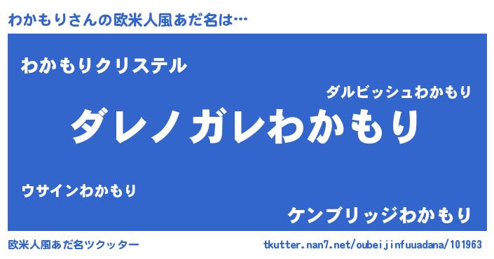| 男性向けラノベタイトル風あだ名 | 『この素晴らしい世界にわかもりを!』 |