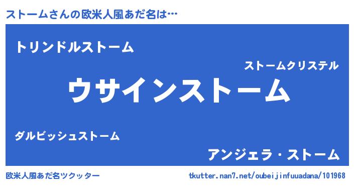 | 男性向けラノベタイトル風あだ名 | 『ストームの嫁は女の子じゃないと思った?』 |