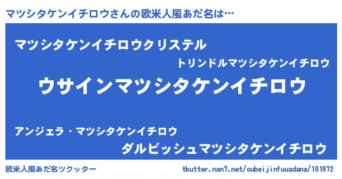| 男性向けラノベタイトル風あだ名 | 『マツシタケンイチロウの嫁は女の子じゃないと思った?』 |