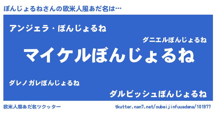| 男性向けラノベタイトル風あだ名 | 『ぼんじょるねの憂鬱』 |