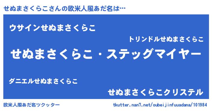 | 意味不明あだ名 | 『とにかく怪しいせぬまさくらこ』 |