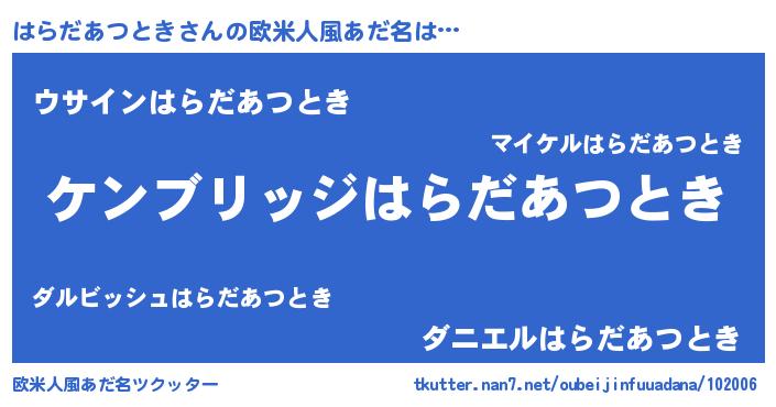 | 女子向けラノベタイトル風あだ名 | 『はらだあつときアンティーク』 |
