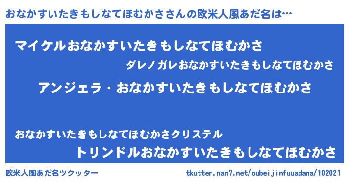 | 恥ずかしいあだ名 | 『プリティーおなかすいたきもしなてほむかさ』 |