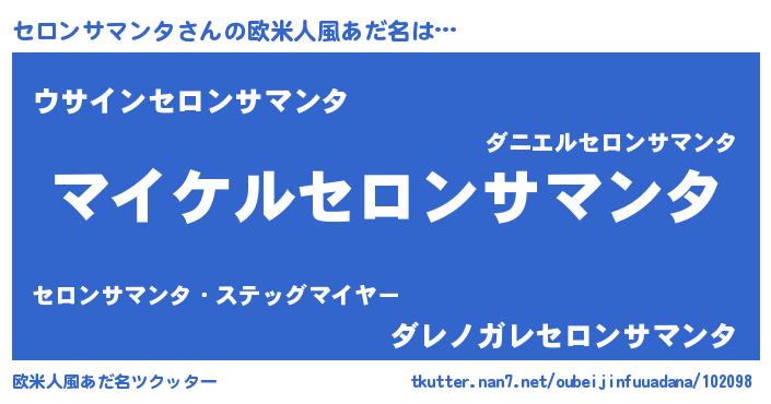 | 男性向けラノベタイトル風あだ名 | 『セロンサマンタアートオンライン』 |