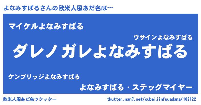 | 意味不明あだ名 | 『住所不定無職よなみすばる(4歳)』 |