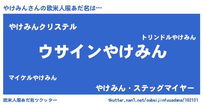 | 意味不明あだ名 | 『とにかく怪しいやけみん』 |