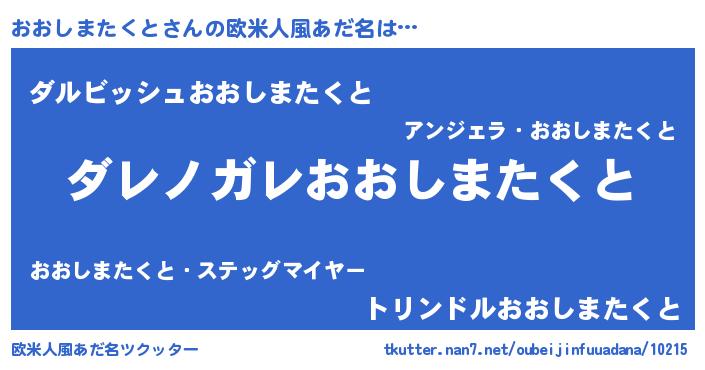 | 男性向けラノベタイトル風あだ名 | 『この素晴らしい世界におおしまたくとを!』 |