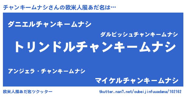 | 男性向けラノベタイトル風あだ名 | 『チャンキームナシ~年齢イコール彼女いない歴の魔法使い~』 |