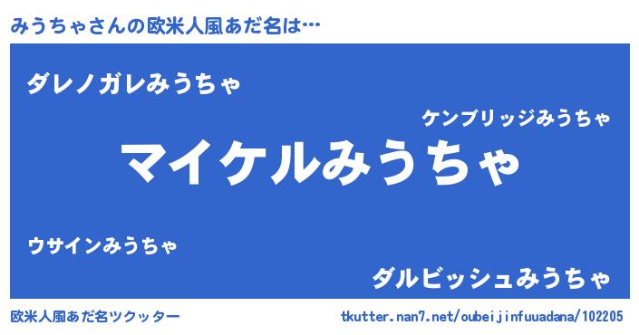 | 男性向けラノベタイトル風あだ名 | 『ミウチャアートオンライン』 |