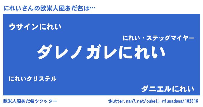 | ピコ太郎風あだ名 | 『ニレ三郎』『ニニ太郎』『ピニ一郎』 |