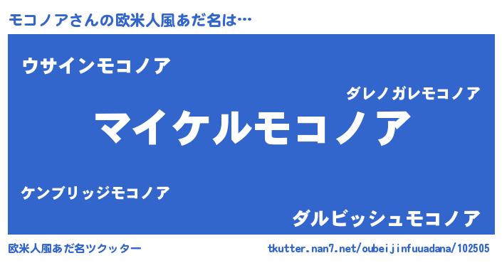 | 男性向けラノベタイトル風あだ名 | 『モコノアの憂鬱』 |