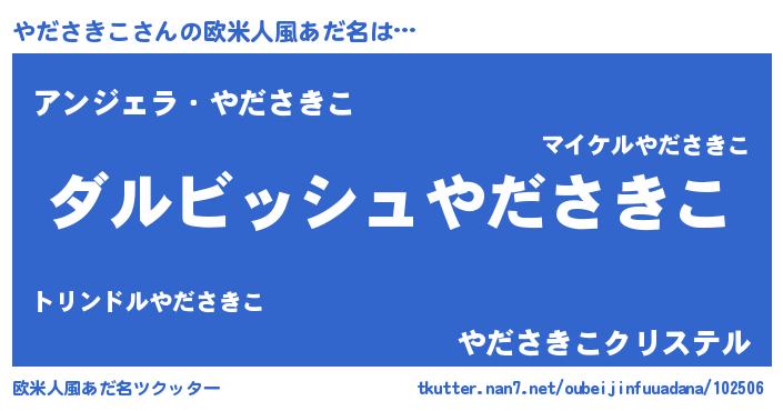 | 女子向けラノベタイトル風あだ名 | 『異世界で失敗しない100のやださきこ』 |