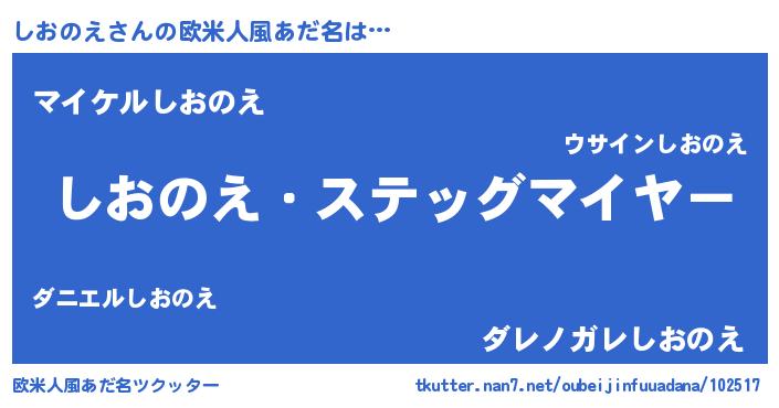 | 男性向けラノベタイトル風あだ名 | 『冴えないしおのえの育てかた』 |