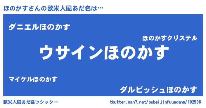 | 女子向けラノベタイトル風あだ名 | 『ほのかすは平凡を望む』 |