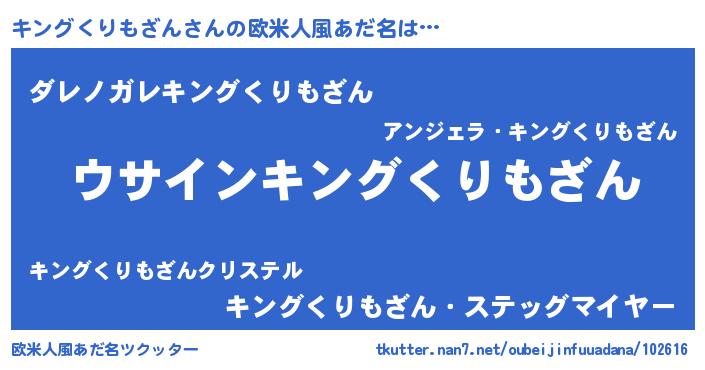 | 男性向けラノベタイトル風あだ名 | 『キングくりもざんの嫁は女の子じゃないと思った?』 |