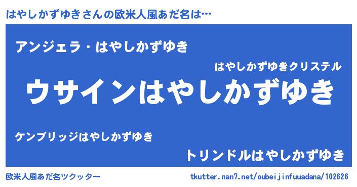 | 男性向けラノベタイトル風あだ名 | 『ダンジョンにはやしかずゆきを求めるのは間違っているだろうか』 |