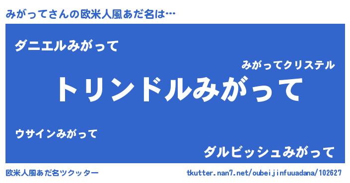 | 男性向けラノベタイトル風あだ名 | 『転生したらみがってだった件』 |