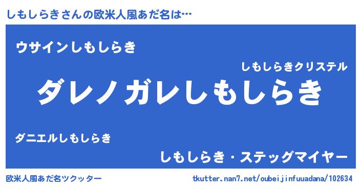 | 意味不明あだ名 | 『住所不定無職しもしらき(62歳)』 |