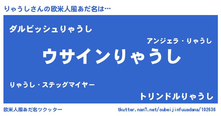 | 男性向けラノベタイトル風あだ名 | 『りゃうしの嫁は女の子じゃないと思った?』 |