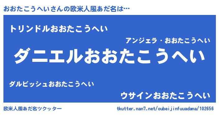 | 男性向けラノベタイトル風あだ名 | 『ノーゲーム・ノーオオタコウヘイ』 |