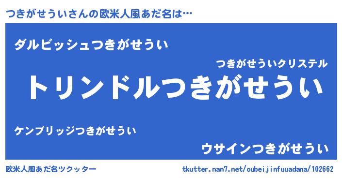 | 男性向けラノベタイトル風あだ名 | 『つきがせうい~年齢イコール彼女いない歴の魔法使い~』 |