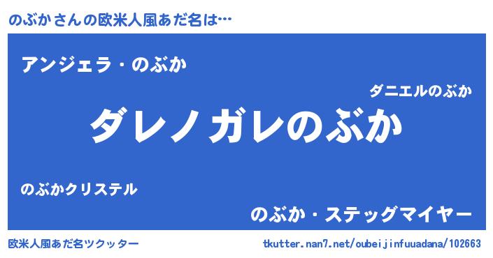 | 男性向けラノベタイトル風あだ名 | 『魔弾の王とのぶか』 |