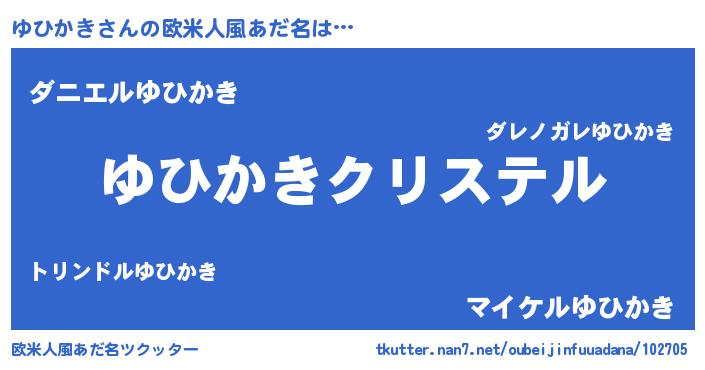 | ポケモン風あだ名 | 『ユヒカダネ』『ユックウザ』 |