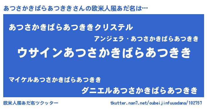 | 男性向けラノベタイトル風あだ名 | 『あつさかきばらあつききの嫁は女の子じゃないと思った?』 |