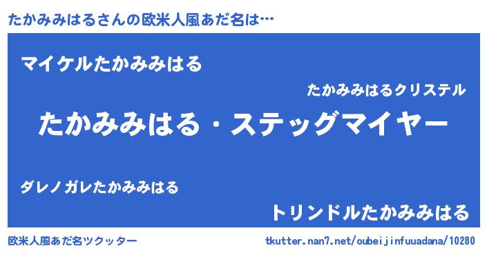 | 女子向けラノベタイトル風あだ名 | 『男装たかみみはるの憂鬱な任務』 |