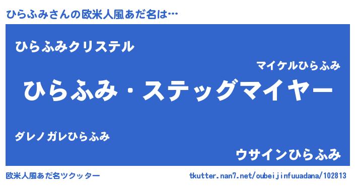| ヒーロー風カッコイイあだ名 | 『ウルトラひらふみマン』『黄金騎士ヒラ』 |