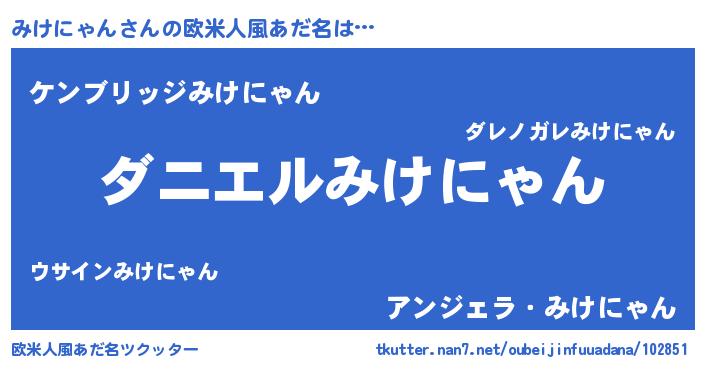 | ヘコむあだ名 | 『みけを』『みけにゃん(小並感)』 |