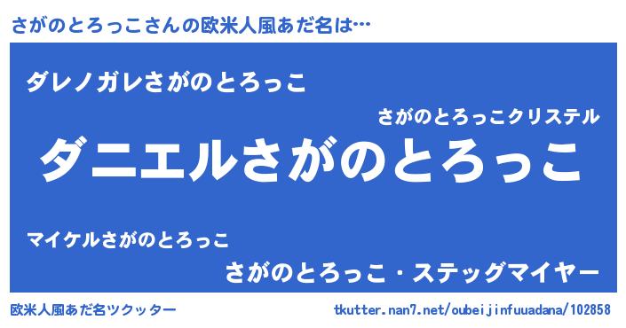 | 男性向けラノベタイトル風あだ名 | 『おまえをオタクにしてやるから、俺をさがのとろっこにしてくれ! 』 |