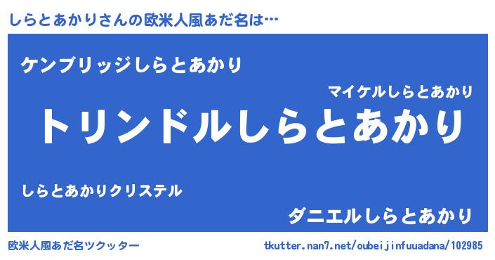 | 男性向けラノベタイトル風あだ名 | 『しらとあかり~年齢イコール彼女いない歴の魔法使い~』 |